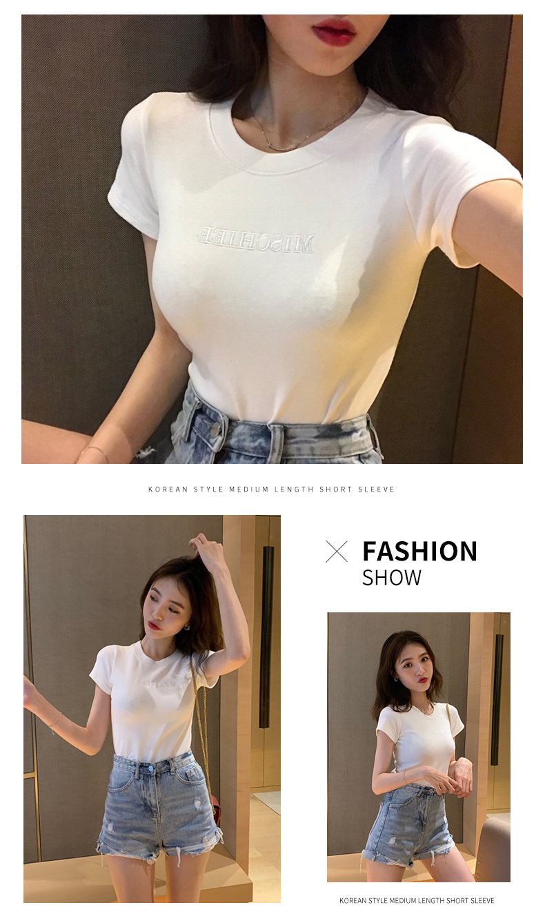 T卹 短袖上衣 短袖t恤 女裝 女上衣 女裝 衣服 美式t恤 字母刺繡修身短袖 韓版t 夏季女裝 女裝 女生【台灣現貨】