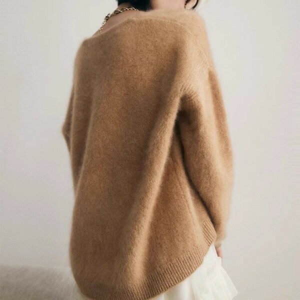 這款高階感軟糯仿水貂絨V領毛衣,以柔軟細膩的仿貂絨面料打造舒適奢華觸感。穿上後呈現慵懶風時尚氣息,兼具高質感與休閒風格,適合秋冬季節的日常與約會穿搭。
