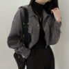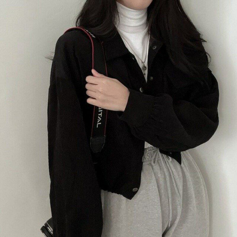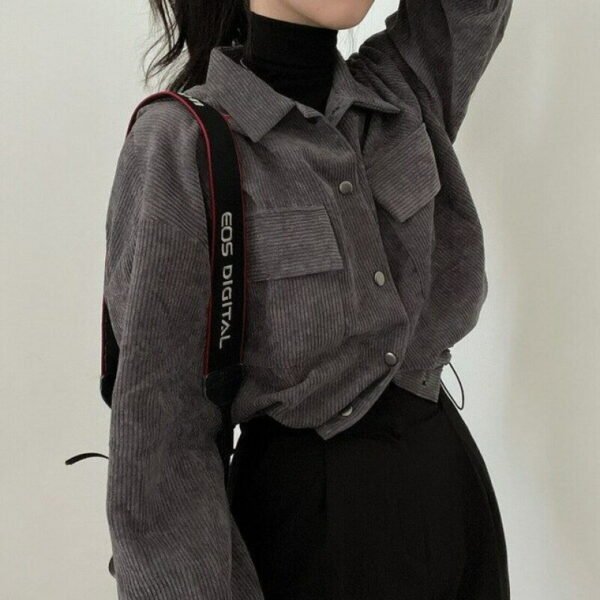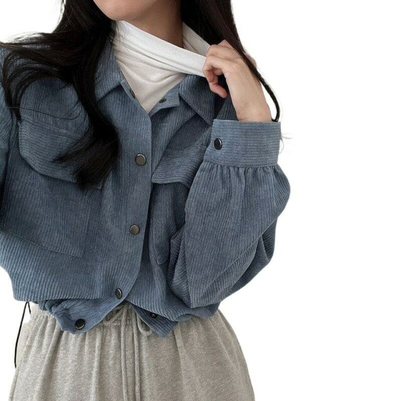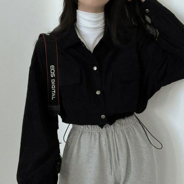 這款韓國復古簡約翻領短款襯衫上衣,以經典翻領搭配燈芯絨材質,打造出低調復古的韓系時尚風格。短款設計與抽繩細節相結合,增添隨性俐落感,輕鬆營造休閒又有設計感的穿搭效果。