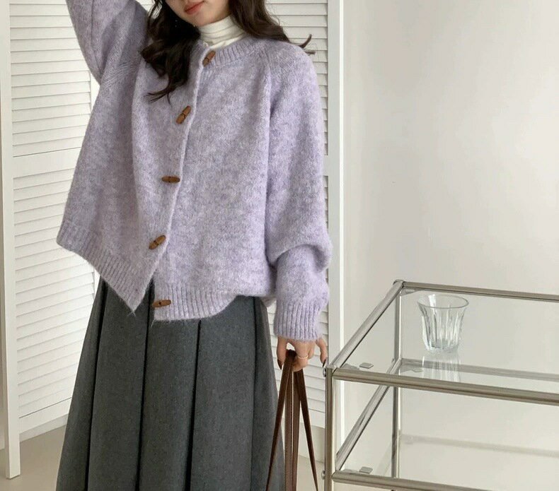 ✨ 韓系復古.溫柔學院風 融合韓系簡約與經典復古元素,吸睛的 「牛角釦」 設計是整體亮點,為素色外套增添了滿滿的 「學院風」 與減齡感。隨意披上,立刻展現如韓妞般的溫柔氣質。