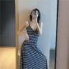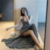 新款吊帶小黑裙性感溫柔v領打底復古長側開腳黑色洋裝女