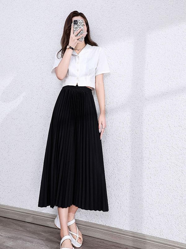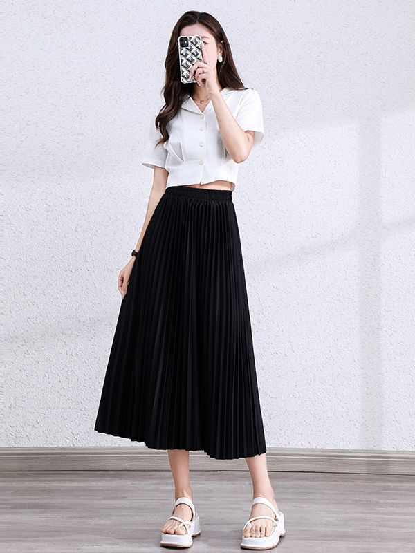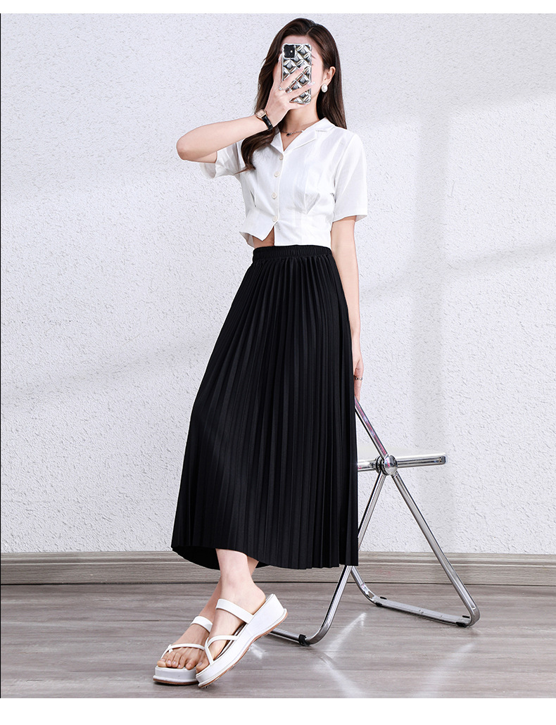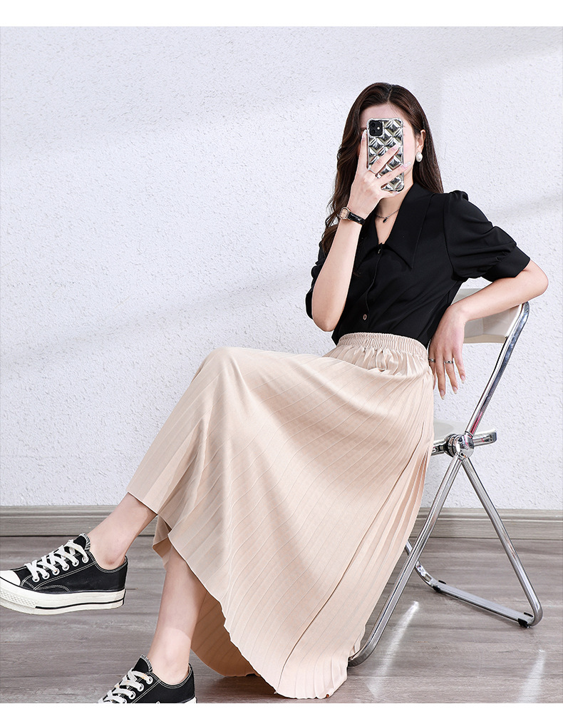 ✨ 完美垂墜感.飄逸顯瘦 採用高磅數(或輕盈)「垂墜感面料」,裙襬自然垂順、挺括有型。百褶線條俐落,不會因為久坐而炸開。行走時裙襬隨風擺動,展現優雅的 「飄逸感」,仙氣十足。