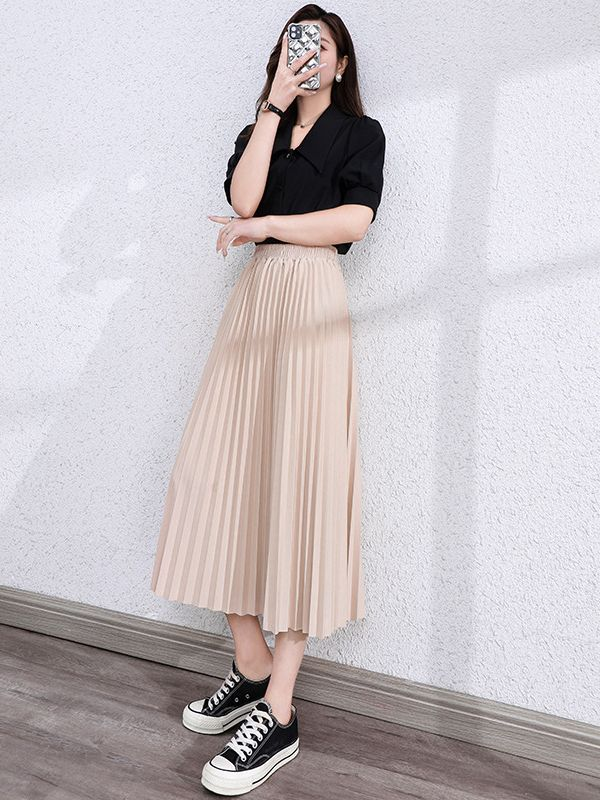 ✨ 百搭實穿.切換風格 極簡素色(或經典百褶)設計,怎麼搭都好看。搭配 T 恤、球鞋展現 「休閒學院風」;搭配襯衫、跟鞋則是優雅的 「上班通勤 Look」。一件裙子就能搞定多種場合。