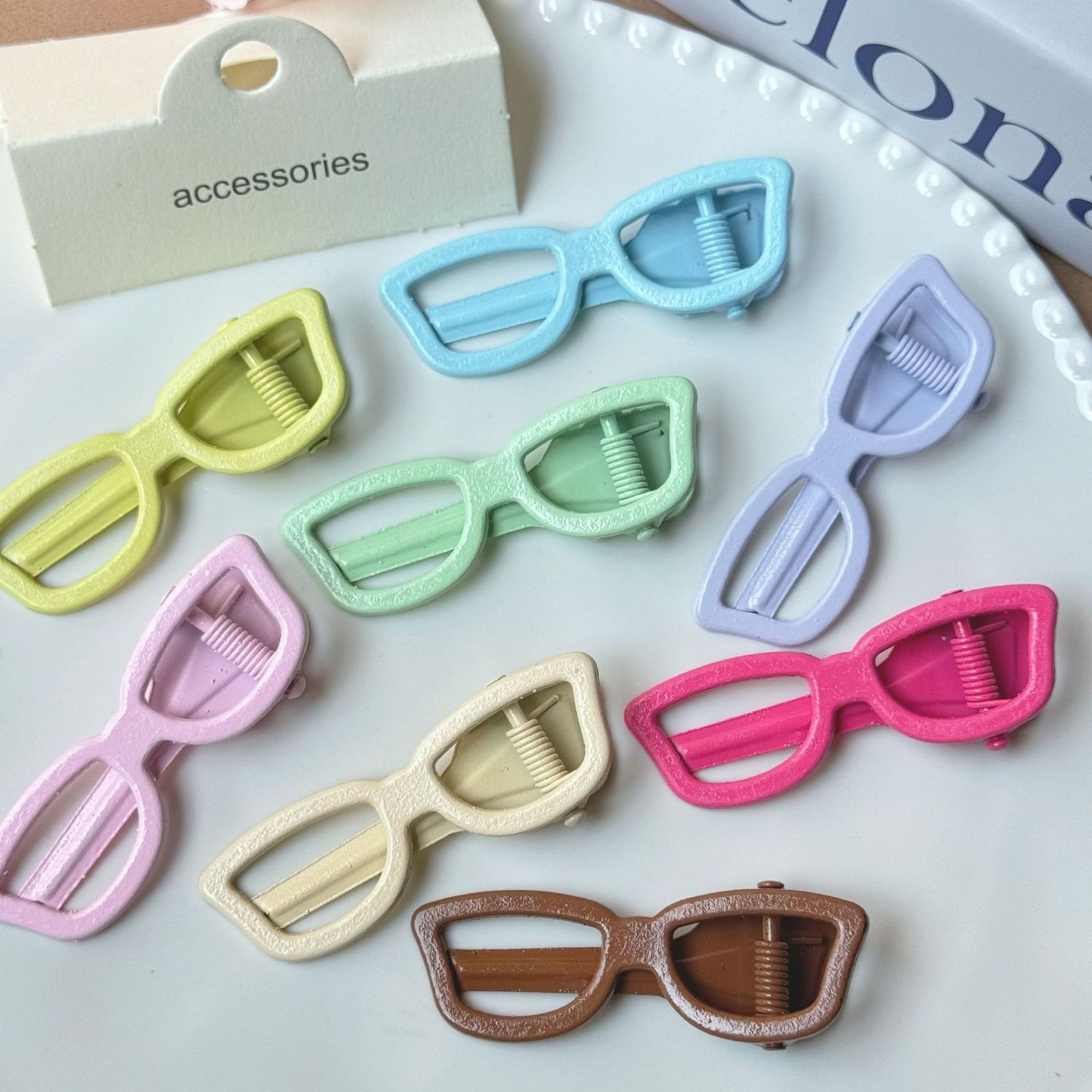 ✨ 百搭萬用.點亮造型 不論是搭配雙馬尾、丸子頭或是簡單的披髮,只要夾上這款眼鏡髮夾,馬上讓髮型變得有層次。適合 「音樂祭」、派對、出遊或 「閨蜜穿搭」,輕鬆打造專屬的潮流 Look。