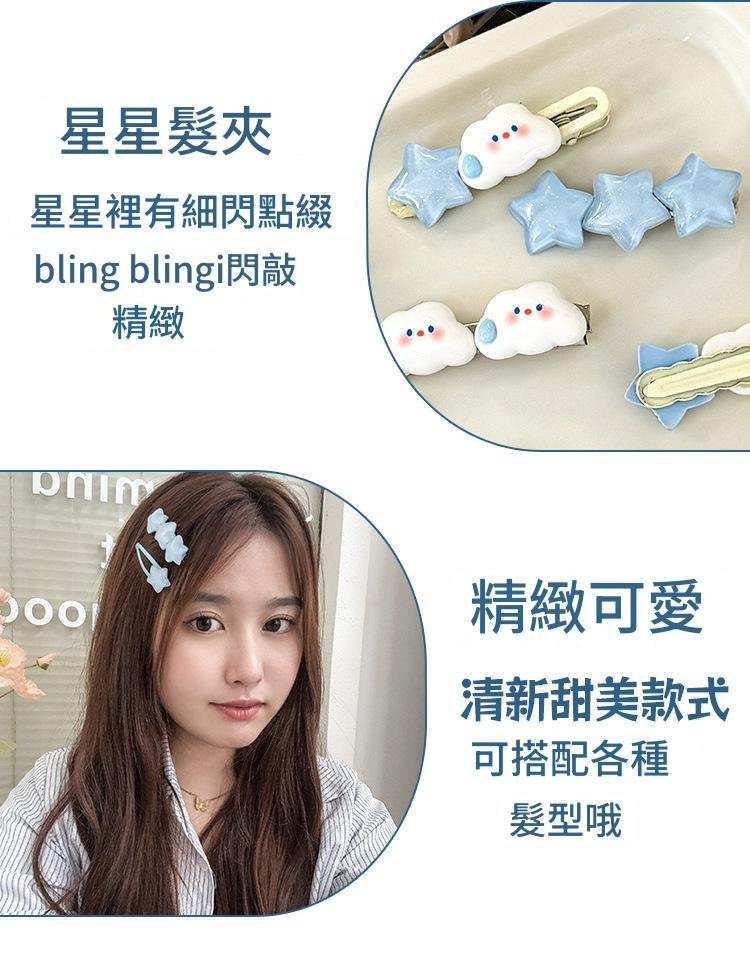 雲朵星星髮夾適合側邊夾髮、半紮、丸子頭或馬尾點綴,打造豐富層次感。無論日常休閒、派對拍照或旅行出遊,都能輕鬆成為造型亮點。