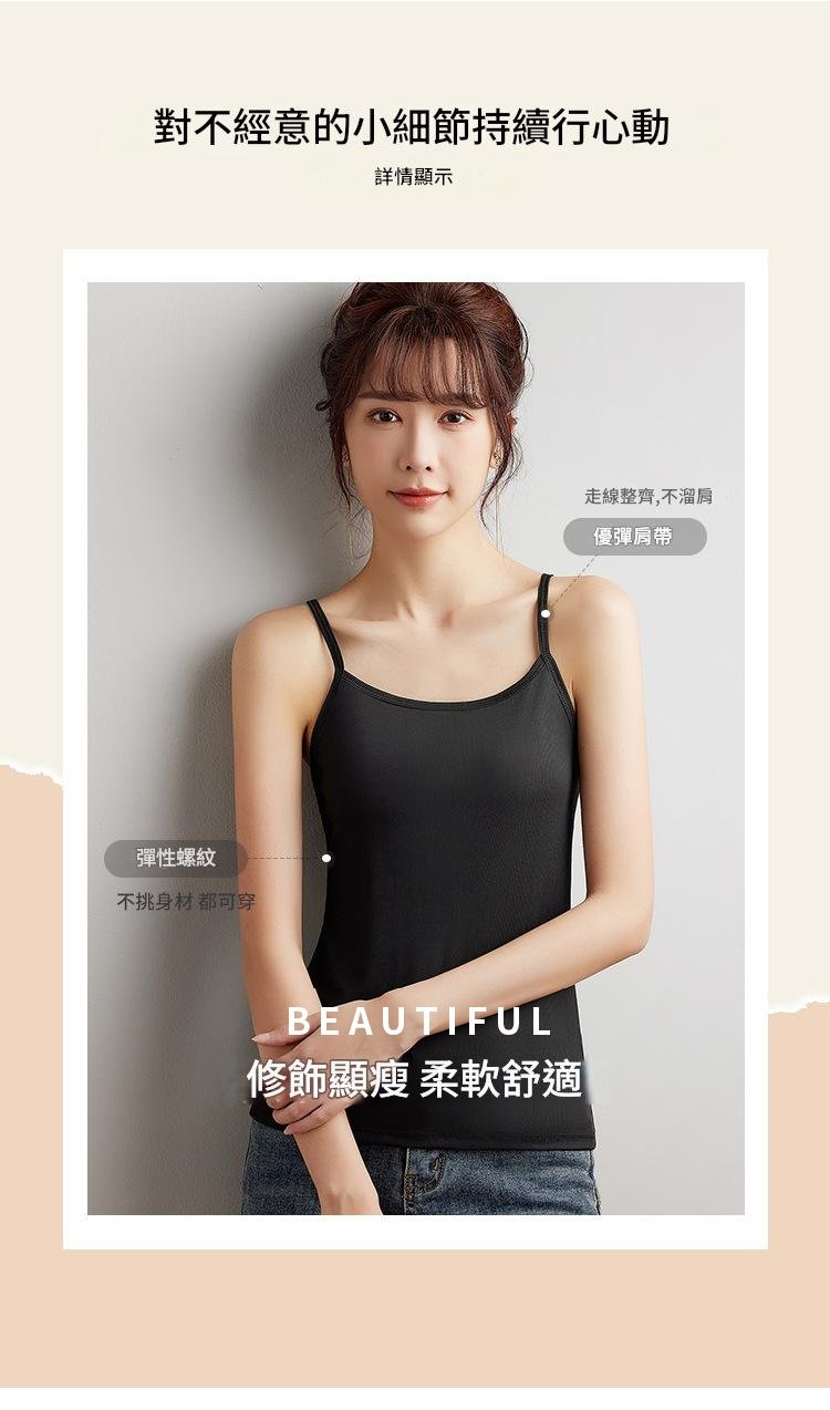 我們嚴選優質透氣的面料製作這款吊帶背心,確保全天舒適。同時,吊帶設計精緻穩固,提供完美的支撐,讓您自信地展現肩頸線條。此外,背心的版型設計能很好地修飾身材,無論是瘦身的效果還是視覺上的比例調整,都恰到好處。